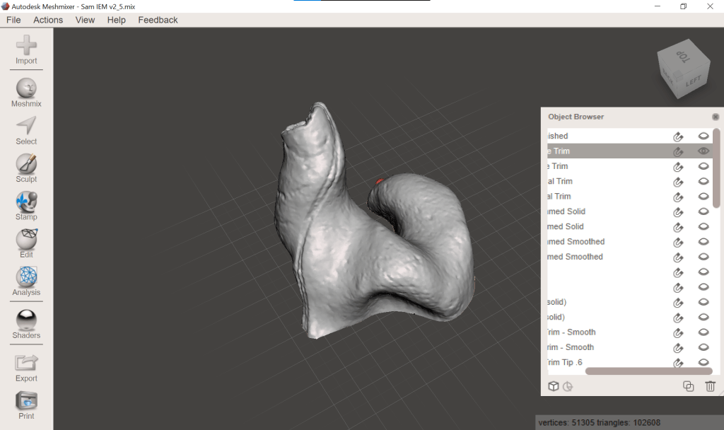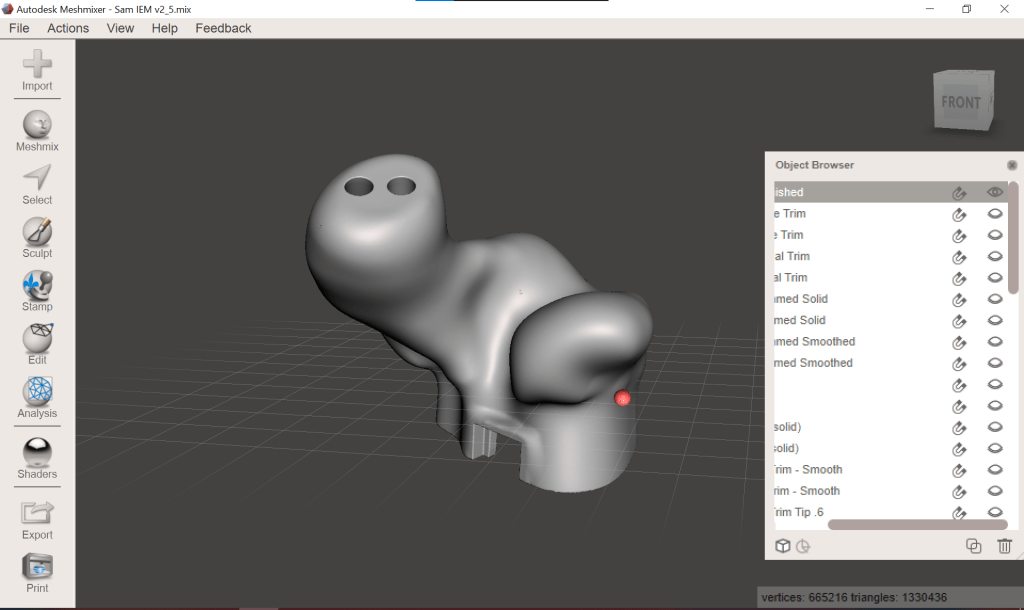 I probably could have kept going with Mesh Mixer, it really is great general purpose mesh modeling software but it had become clear to me that this was a less than ideal solution for modeling IEMs. Between the constant software crashes and the difficult to manage object browser I knew that a better solution had to exist.