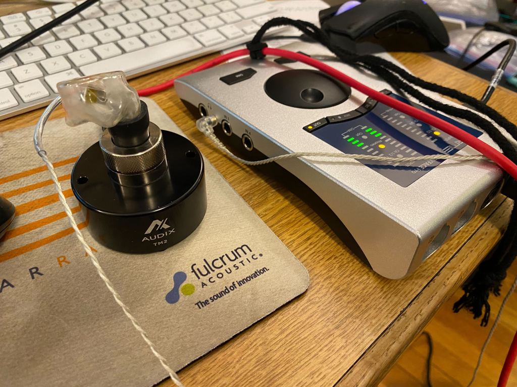 In my day job I design speakers. In the modern speaker design process listening is important but measurement is where one starts when they want to understand why something sounds the way it does. I own plenty of speaker testing gear but measuring IEMs is a bit different than measuring an “out loud” speaker like I am used to working with. This page gives a much more detailed description but in essence IEMs need to be measured with a special type of measurement coupler that simulates the human ear. I didn’t have one of these so that was next on my list of things to buy. I opted for an Audix TM2 which I like because it is reasonably robust, made by a well regarded company and runs off of normal XLR phantom power. It also doesn’t hurt that I know their director of US sales and he was willing to lend me his personal TM2 to try out.